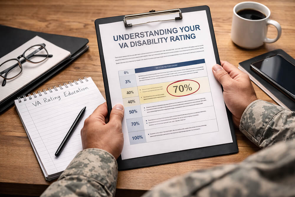 Clear explanation of how VA ratings work, what affects your percentage, and how to pursue the highest appropriate evaluation.